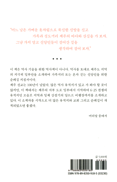 이 책은 제주도 서부 도로 일부에서 시작하여 6‧25 전쟁 유적지인 모슬포 지역과 일제 시대의 알뜨르 비행장 유적지까지를 사진과 함께 소개하고 있다.