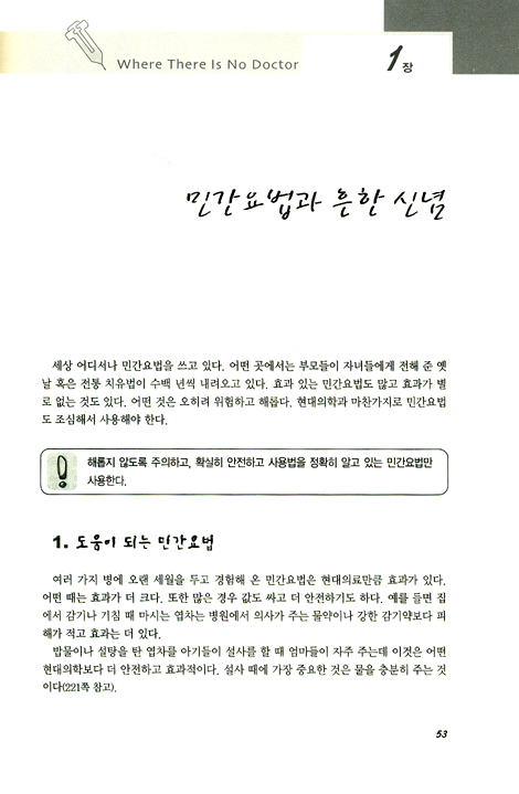 본서는 각 가정과 마을 주민들을 위해서 쉽게 쓰여졌고 많은그림으로 이해를 돕고 있다. 이렇게 예방,