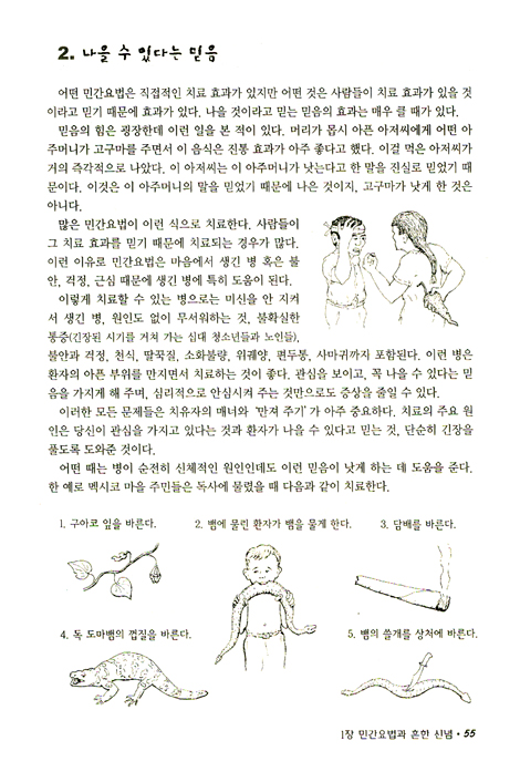 하고 있다. 또한 전통적인 약과 현대의약을 분별하여 사용하도록 설명하고 있다.