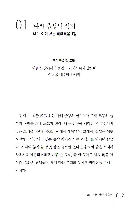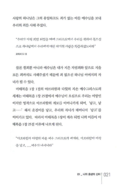 아직도 배워야 할 것이 많은 사람이 책을 쓰는 일이 무례하다는 생각도 들지만, 한 사람이라도 이 책을 읽으면서 하나님 말씀의 진리에 대한 감격으로 행복해지기를 바라는 마음으로 이 글을 씁니다. 이 책을 읽고 있는 당신이 바로 그 사람이었면 좋겠습니다.