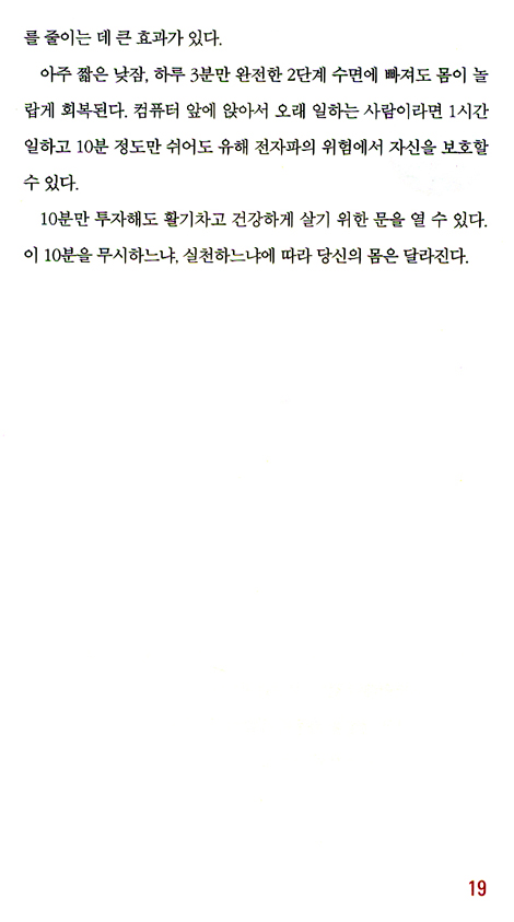 얼굴, 몸, 마음이 10년 이상 젊어진다는 것은 그리 어려운 일이 아니다. 지금 10분을 투자한다면 누구나 가능하다. 이 한 권의 책에 그 놀라운 비밀이 들어 있다.