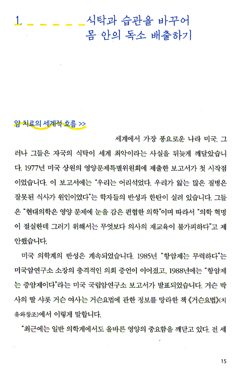 식탁과 식습관의 변화로 몸 안의 독소를 배출하는 암 극복 프로젝트