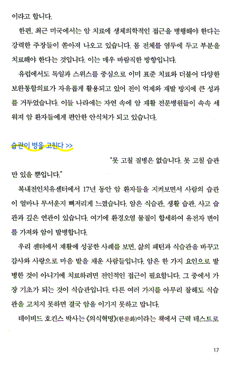 암을 이기는 복내 영양요법