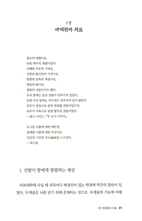 뇌사를 인정하자는 입장 중에는 병원비 감당이 어렵다거나 기계에 의해 연명되는 생명의 고통에 대해 인도주의적으로 내린 결론(안락사)이라는 주장도 있다. 그러나 이 주장은 죽음 또는 생명의 정의의 본질에 근접한 답이 될 수도 없고 죽음을 향해 가고 있는 환자의 입장이 고려된 것도 아니다. 본질에 근거해서 정의되어야 할 주제가 다른 목적의 개입으로 왜곡되면 전혀 예기치 않았던 결론까지 이를 수 있다. 이 왜곡은 갑작스런 변화보다는 본질에서 벗어난 약간의 문제점을 인정하기 시작한 데서부터 기인하는 경우가 많다. 뇌사 인정 이후에도 여전히 장기는 모자랄 것이다. 그때는 뇌사와 식물인간의 차이가 없다고 주장하거나 뇌피질사를 들고 나올지도 모른다는 말이다. - 273쪽