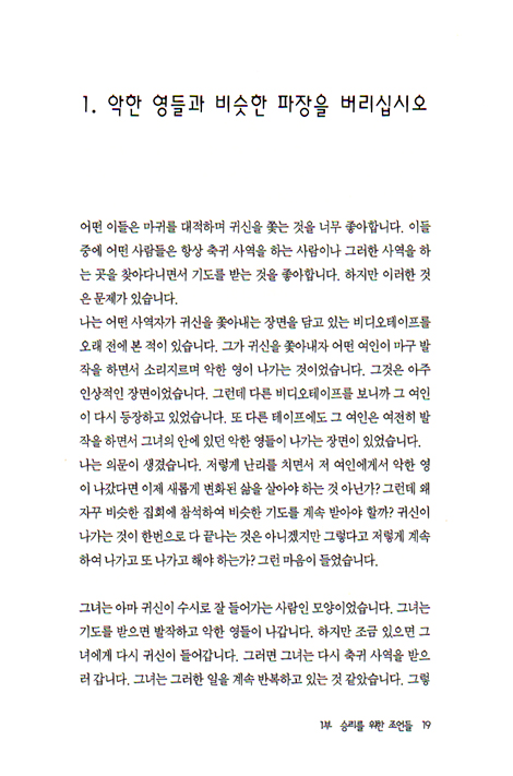 대적기도를 통해 삶이 자유로워지고 행복해졌습니다. 좋지 않은 생각이 들어 올 때 그것을 대적하면