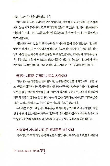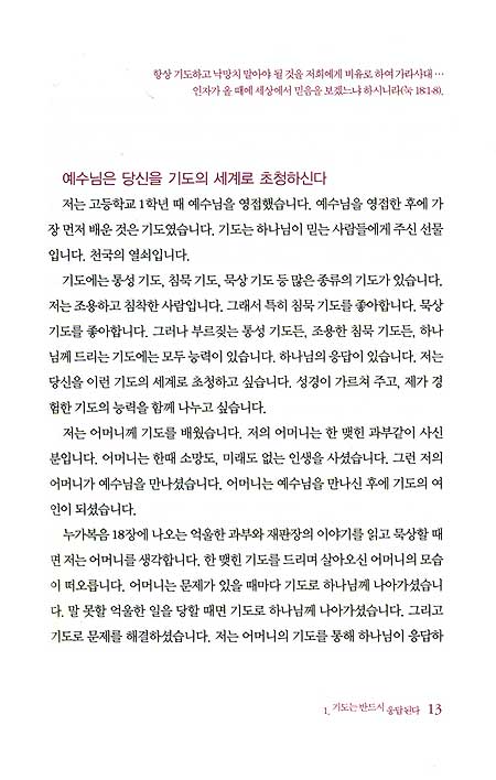 '저는 기도 응답을 체험하면서 기도의 맛을 알기 시작했습니다.제 기도의 깊은 경험은 기도하는