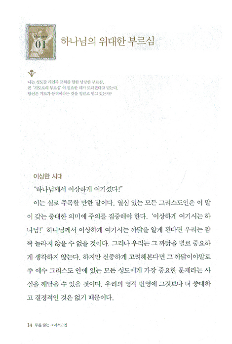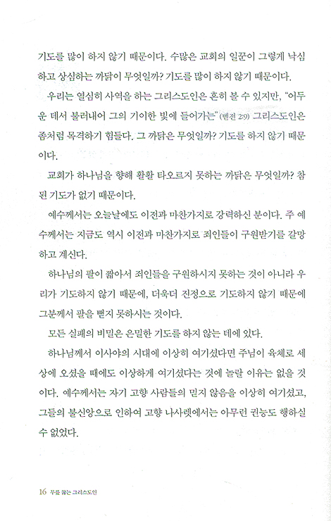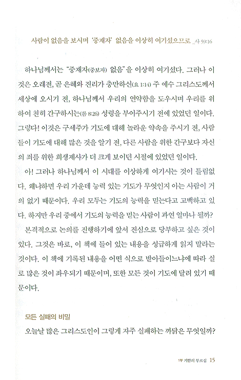 이 책은 1장만 읽더라도 기도의 격정을 느껴 무릎 꿇게 하는 책이다.