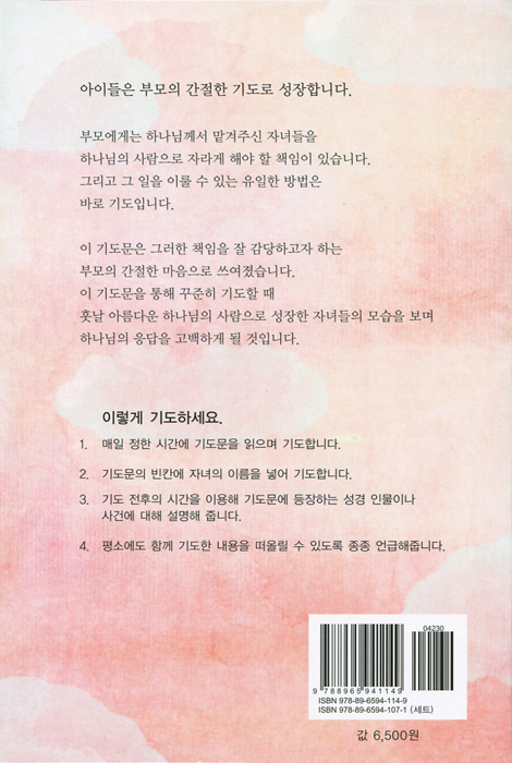 이 기도문을 통해 꾸준히 기도할 때 훗날 아름다운 하나님의 사람으로 성장한 자녀들의 모습을 보며 하나님의 응답을 고백하게 될 것입니다.