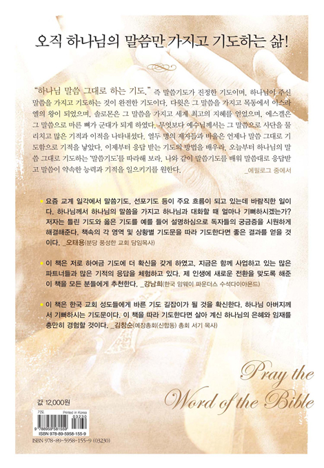 하나님의 말씀대로 기도하여 여러 가지 기적을 경험한 이야기와 그 실제 기도문을 제시한 책!