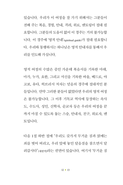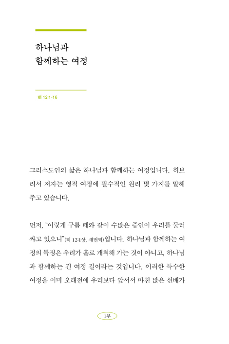 우리에게는 선한 목자이신 하나님, 우리를 극진히 맞아 주시는 인자한 집주인 하나님이 계십니다. 고달프고 험난한 인생의 여정이지만, 우리에게는 영혼의 소생함을 얻고 의의 길을 끝까지 걸어가기 위해 잠시 쉬었다 가는 푸른 풀밭, 잔잔한 물가가 있습니다. 나그네로서 여정이 매우 힘들고 외로울 때, 비바람이 몰아치거나 뜨거운 햇볕이 내리쬘 때 우리를 위협하는 세력, 우리의 외모나 배경을 상관하지 않고 우리를 친절하게 맞이해 주는 집주인이 계십니다. _1부 25쪽