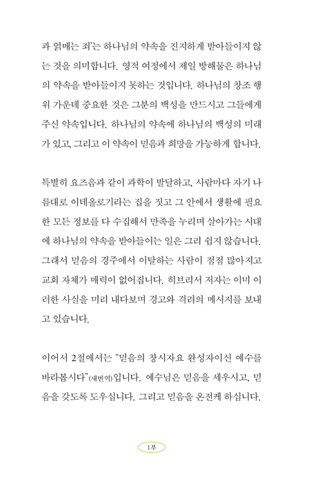 우리는 하나님 나라에 속한 사람들입니다. 하나님 나라에 속한 사람은 입구 초입에서 서성거리면 안 됩니다. 점점 깊은 곳으로 들어가야 합니다. 그래야 하나님 나라의 신비를 깨달아 갈 수 있습니다. 밭에 숨겨진 보화와 많은 모조품 진주 가운데 진짜 진주를 발견하는 기쁨과 충만함이 바로 그 신비입니다. 우리 남은 생의 여정이 하나님 나라에 속한 백성이라는 특별한 은혜의 자리에서 지속적으로 익어 가야 합니다. 그렇지 않으면 우리는 실패합니다. 우리의 이 여정은 이 현실에서 끝나지 않고 영원의 시간으로 이어집니다. 예수님은 하나님 나라의 현실성을 그림 언어로 우리에게 전개하십니다. 그리고 그 나라에 발을 들여놓도록 부르십니다. (…) 그 나라에 속하는 자유, 기쁨, 변화 속으로 사람들을 부르십니다. _2부 146-147쪽