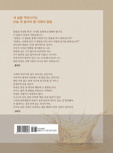 나는 매일 말씀 묵상을 통해서 큰 유익을 얻는다. 여러 상황 속에서 주님과 동행하는 삶에 대한 이해를 넓혀간다. 어떤 환경에도 주님과의 친밀함을 유지하는 방법을 배운다. 하루에도 여러 사건과 상황을 만난다. 이때 하나님과 사람에게 무슨 말을 하고, 어떤 행동을 취해야 할지 알게 된 것이 가장 큰 열매다. 말씀 묵상은 내 마음의 정원사가 되어 잡초가 자라지 않게 한다. 아름다운 꽃을 한가득 피우고, 주의 향기로 내 마음을 꽉 채워준다. 659쪽