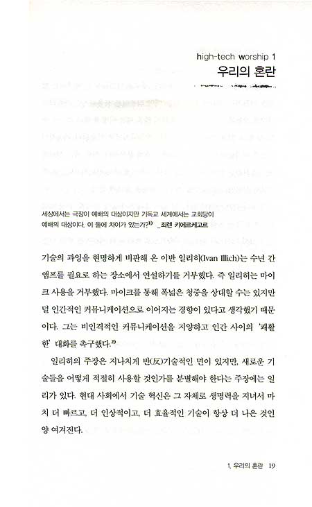 이 책은 오늘날 테크놀로지 예배에서 경계해야 할 점과 교회에서 이런 기술적인 면에 대