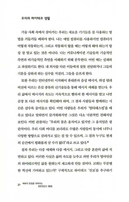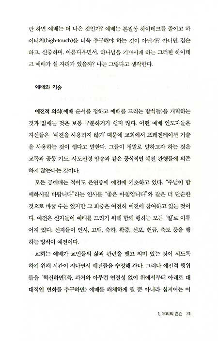 의 역할임을 잊지 않는 이 책은 예배와 기술의 조화에 대해 고민하는 이들에게 매우 탁월한