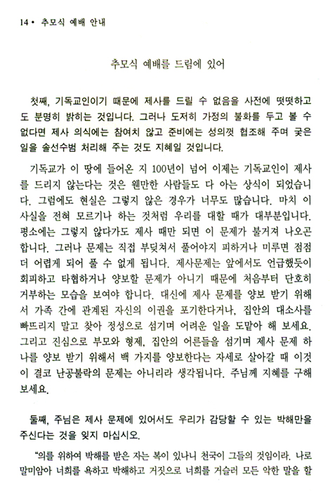 추모식 예배 안내 _가정에서 가족끼리 드리는