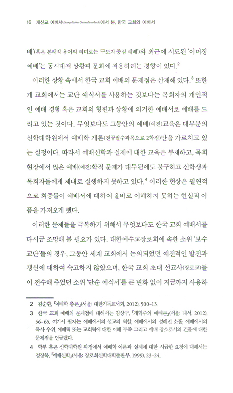 통전적이고 실천지향적인 신학을 강조하는 상황에서 예배학의 매우 중요한 과제 중의 하나가 실제 목회 현장에서 활용 가능한 예배 예식서의 계발이다. 신학교에서 개혁주의 신학의 토대에 근거하여 예배학을 교육하고 학습하더라도, 목회 현장에서는 신학교에서 배웠던 예배학보다는 목회 현장을 지배하는 성장논리를 설득력 있게 담아내는 예배 형식들이나 예배 형태를 쉽게 모방하는 상황에서, 개혁주의 신학에 기초한 예배 예식서의 계발은 매우 중요하고도 시급한 과제라 생각된다. 이런 차제에 한국의 대표적인 개혁주의 예배학자인 김상구 교수의 『한국 교회와 예배서』는 개혁ㅈ의 예배학을 목회 현장에서 좀 더 실제적으로 구현할 수 있는 예배 형식의 확산을 위해서 중요한 디딤돌 역할을 감당할 수 있을 것이다.