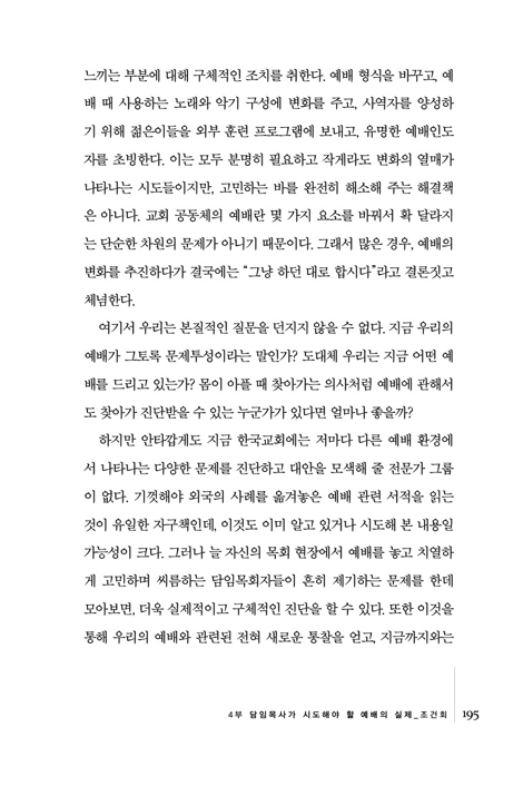 4부 담임목사가 시도해야 할 예배의 실제 _조건회