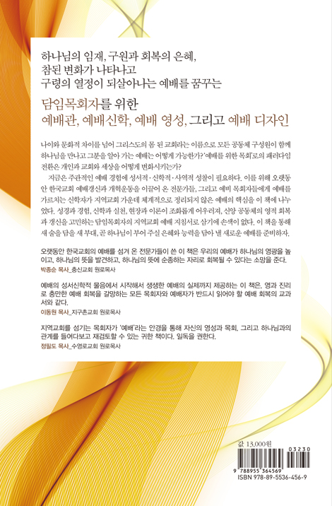 모두가 바라는 예배의 핵심은 성경적 예배관과 올바른 예배신학의 정립, 공동체가 함께 할 수 있는 예배다. 나이와 문화적 차이를 넘어 그리스도의 몸 된 교회라는 이름으로 함께 하나님을 만나고 그분을 알아 가는 예배, ‘예배를 위한 목회’로의 패러다임 전환이 요구된다. 이에 이 책은 진정한 예배에 대한 갈망이 높아진 지금의 한국교회 앞에, 진정한 예배로의 첫걸음이자, ‘담임목사를 위한 지역 교회 예배 지침서’가 될 것으로 보인다.