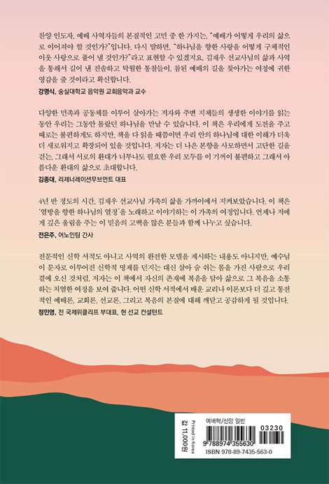 찬양 인도자, 예배 사역자들의 본질적인 고민 중 한 가지는, “예배가 어떻게 우리의 삶으로 이어져야 할 것인가?”입니다. 다시 말하면, “하나님을 향한 사랑을 어떻게 구체적인 이웃 사랑으로 풀어 낼 것인가?”라고 표현할 수 있겠지요. 김재우 선교사님의 삶과 사역을 통해서 길어 낸 진솔하고 탁월한 통찰들이, 참된 예배의 길을 찾아가는 여정에 귀한 영감을 줄 것이라고 확신합니다.