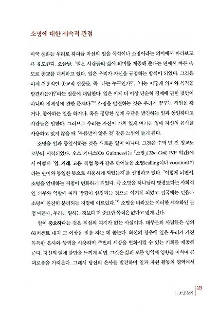 1) 오스 기니스의 ‘소명’에 기초한 성경적 소명관