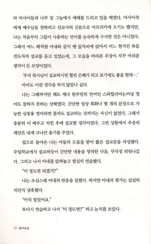 죽을 고비를 몇 번이나 넘기고 케냐 사람들조차 주려워하는 마사이들을 섬기며, 하나님의 산 역사를 맛본다
