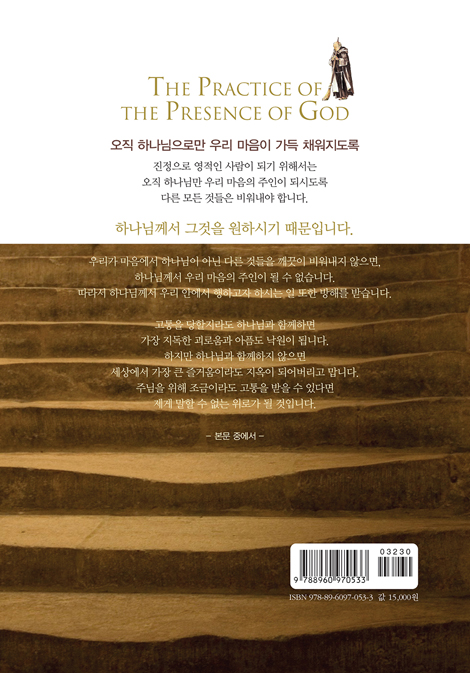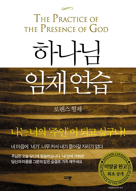 이런 영적 풍조에 로렌스 형제의 언행록인 이 책은 우리에게 선지자의 음성이 될 것이다. 이 책은 1692년에 초판이 발간된 이래로 세계적인 클래식 베스트셀러로 굳게 자리매김하였다. 규장에서 발간한 이 책은 가능한 한 로렌스 형제의 원문에 가깝게 번역하려고 노력하였고, 그간 한국에 소개되지 않은, 로렌스 형제의 친구인 보포르 수도원장이 로렌스 형제의 생애와 영성에 대해 밝힌 글을 추가로 수록했다(이 책 맨 앞에 소개되었다).