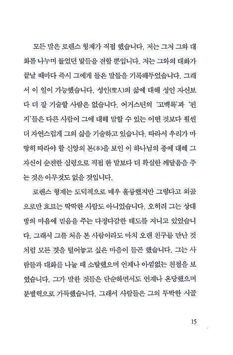 하나님의 임재를 구한 로렌스 형제의 행적과 말과 대화가 담긴 책입니다.