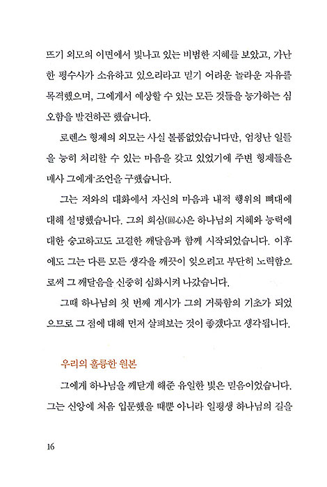 로렌스의 삶에서 예수 그리스도의 향기와 영성을 보다 /12
