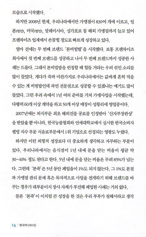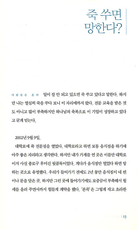 사업이 부도나고 모든 것을 잃은 것 같았을 때, 수많은 노력과 시행착오를 통해 ‘본죽’을 만들어냈다.