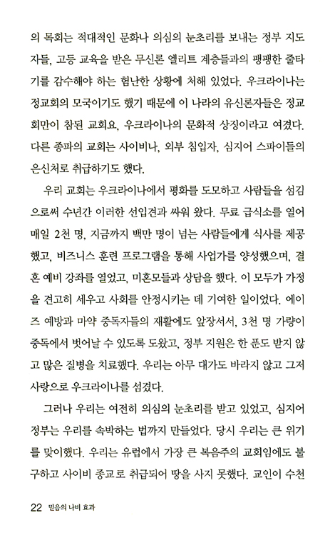이 책은 저자 선데이 목사가 아프리카의 작은 마을에서 고아로 자라 기독교인이 된 사연으로 시작해, 우크라이나로 건너가 기독교를 탄압하는 분위기 속에서 교회를 세우게 된 이야기가 파노라마처럼 펼쳐진다.