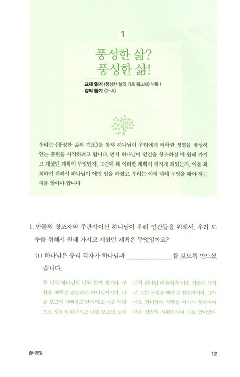 ■ 《풍성한 삶의 기초 워크북》 활용법