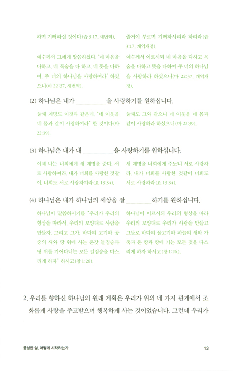 1. 《풍성한 삶의 기초》는 이미 예수님을 영접하고 주인으로 모시기로 결심한 사람들을 대상으로 만들어졌다. 아직 예수님을 삶의 주인으로 모시지 않은 사람들은 이 책을 사용하지 말라.