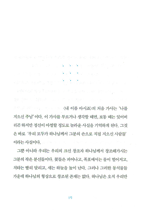 이런 때에 천지를 지으신 전능하신 하나님께서 나의 이름을 아시고, 내 마음속 꿈과 열정은 물론 상처와 눈물까지 다 아신다는 사실은 우리에게 얼마나 큰 위로를 주는가? 이 사실을 잊어버렸거나 알지 못해 슬퍼하고 불안해하고 있다면 《내 이름 아시죠》를 통해 기쁨과 희망을 회복할 수 있다..