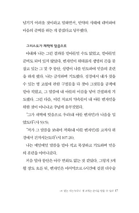 그러나 나는 내 자녀들이 겪었던 이런 최악의 상황과 다른 그리스도인들이 처했던 극심한 고통의 한가운데서 병 고침의 능력이 나타나는 것을 똑똑히 목격했다. 지금 나의 네 자녀들은 하나님의 은혜 아래 튼튼하고 건강하고 씩씩하게 성장하고 있다.