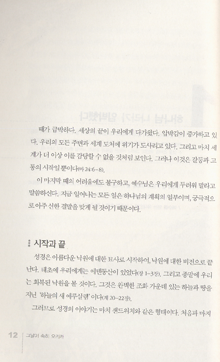 " 때가 긴급하다. 도덕적이며, 영적인 압박감이 증가하고 있다. 우리를 둘러싼 모든 주변과 세계 도처에 위기가 도사리고 있다. 마치 세계가 더 이상 감당할 수 없을 것처럼 보인다. 그렇지만 이것은 갈등과 고통의 시작일 뿐이다. 그러나 마지막 때의 이러한 어려움에도 불구하고 예수님은 우리에게 두려워 말라고 말씀하신다. 지금 일어나는 모든 일들은 하나님의 계획 일부이며, 궁극적으로는 선한 결말을 맞게 될 것이기 때문이다."