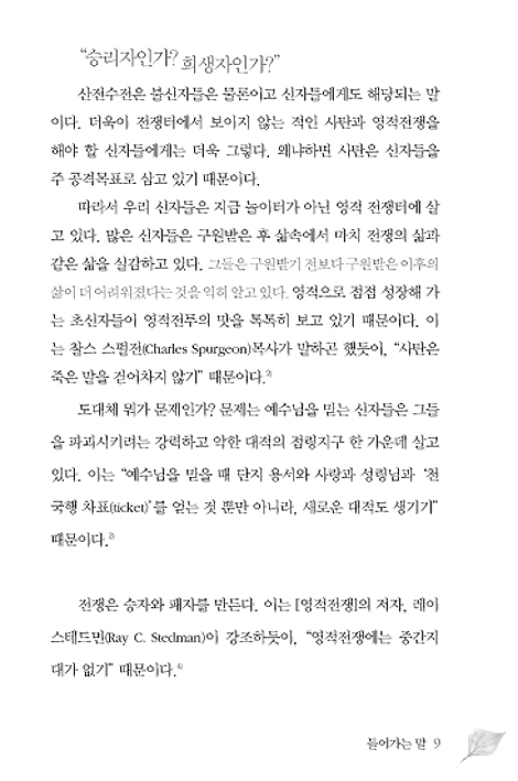 "목사님 저 이제 살았습니다" / 뜨거운 논쟁이 진행 중이다 / "그리스도인들은 귀신에 들리지 않는다"는 주장에 대한 평가 / 신자들도 마귀에게 사로잡힐 수 있는가? / 성경은 신자의 귀신들림에 대해 무엇을 말하는가? / 축사경험을 통해 신자의 귀신들림은 확증될 수 있다 / 변화의 물결에 합류하라 / 선구자의 길을 걸어라 / 3장 주