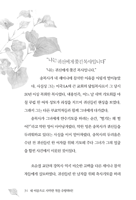 "나는 귀신에게 쫓긴 목사입니다" / 귀신이 존재하니까 귀신을 쫓아야 한다/ 사탄에 대한 신자들의 선택 / 왜 귀신을 쫓아야 하는가? / 소 잃고도 외양간을 못 고치는 교회들의 구조조정이 필요하다 / 신학교와 교회의 상황은 반전되어 가고 있다 / 1장 주