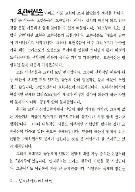 요한서신을 통하여 우리를 부르시고 사랑하시는 하나님과 그분의 자녀된 영광을 분명히 확인하는 본서가 되기를 바랍니다.