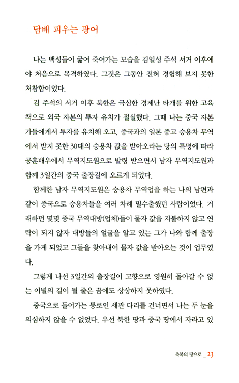이 책은 한 여자의 ‘눈물겨운 탈북의 과정’일 뿐 아니라