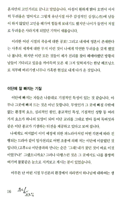 이단에 매여 있다가 주의 은혜로 회심한 자전적 신앙 수기