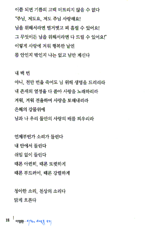 솟구친 ‘사랑의 시냇물’이 강이 되어 흘러넘쳐야 한다.