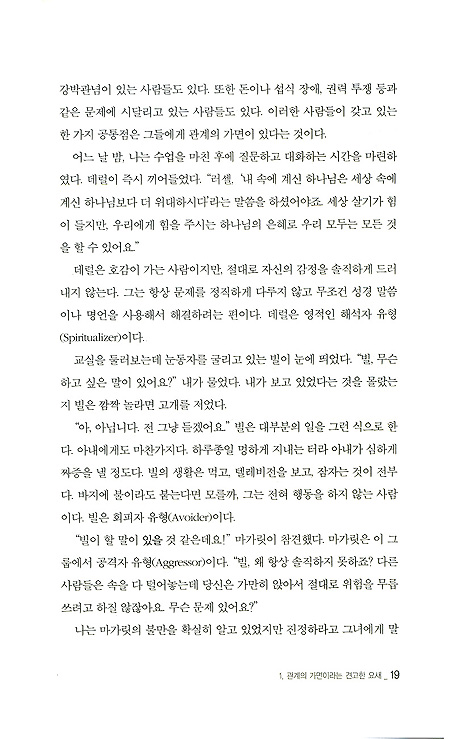 이 책은 건강한 대인관계를 가로막는 원인을 정확하게 보게 해주며,드러난 증상들을 치유하는 데