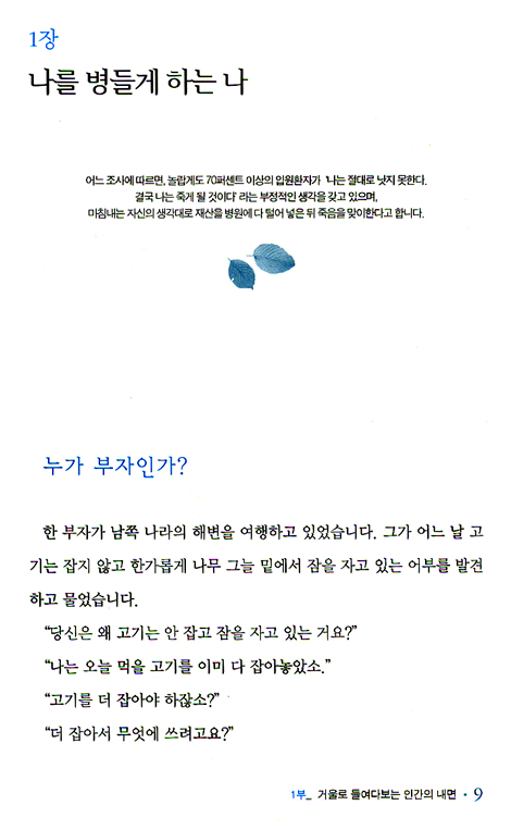 그들도 행복하게 살고 싶어하며, 적어도 외견상으로는 행복하게 살기 위해 무진 애를 씁니다. 하지만 그들의 마음 속 깊은 곳에 자리한 못된 마음의 운전사가 무의식중에 그들을 불행의 골짜기로 몰아가는 것입니다. - 본문 중에서