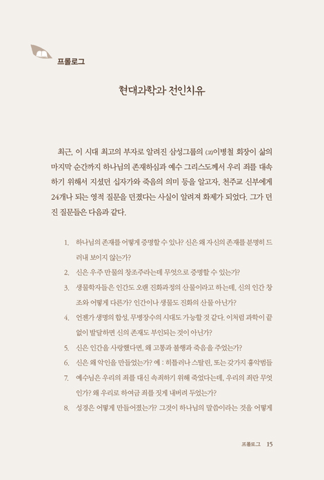 창조주 하나님을 믿는 그리스도인은 성경을 통해 답을 얻었지만, 성경이 어떻게 의학이나 과학과 조화를 이루는지에 대해서는 선뜻 답을 하지 못한다. 그래서 기독교는 비과학적이거나 비논리적인 종교로 치부 받았으며, 어떤 면에서는 현대과학과 의학을 무시하고 믿는 것이 신앙이라고 오해해왔다. 하지만 이 책은 과학과 의학이 신앙과 충돌하지 않음을 보여주며, 오히려 인간을 전인적이며 통합적으로 깊이 이해하는 길을 열어준다.