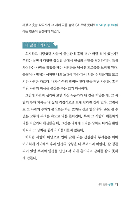 열심히 살면 살수록 왜 우리는 상처받는가. 화평이 가득한 하나님의 제자로 살고 싶었건만, 왜 오늘도 자신의 감정 하나 좌우하지 못한 채 감정의 노예로 살아가고 있는 것일까.