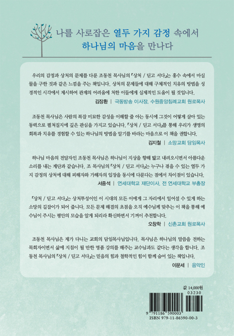 조동천 목사님은 사람의 복잡 미묘한 감성을 이해할 줄 아는 동시에 그것이 어떻게 살아 있는 동력으로 펼쳐질 것인가에 깊은 관심을 가지고 있습니다. 사람이 지닌 부정적인 감정과 태도를 열두 가지로 분류하고 그 해결법을 제시한 『상처 / 딛고 서다』를 통해 우리가 생명의 회복과 치유를 경험할 수 있는 하나님의 방법을 알기를 바라는 마음으로 이 책을 권합니다.