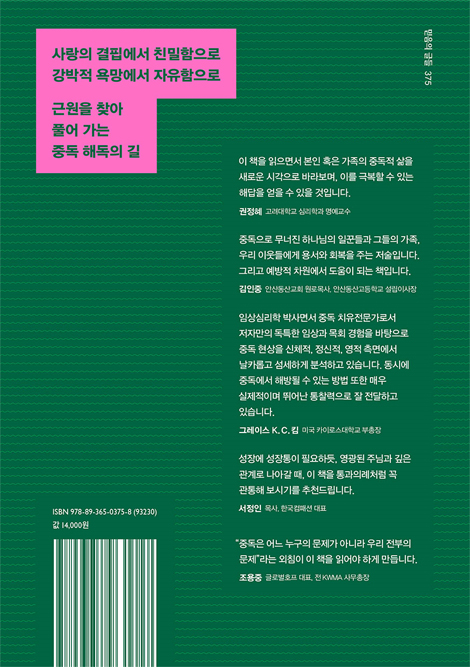 우리의 삶을 노예 삼는 다양한 중독에서 자유로워져서 하나님과 나와 이웃을 진정으로 사랑하기 원하는 모든 분들에게 이 책을 적극 추천합니다. 저자는 뇌 과학을 비롯한 심도 있는 심리학적 지식과 치료 현장의 생생한 사례들, 그리고 저자 자신의 치유와 회복의 여정을 진솔하게 나눔으로써 중독에서 자유로워지는 참된 영성의 길로 안내하고 있습니다. 20여 년 전 시카고 휘튼대학교에서 저자와의 만남 이후 저는 그 안내를 받는 축복을 누리고 있으며, 이 책을 읽는 여러분과 그 축복을 나누고 싶습니다.