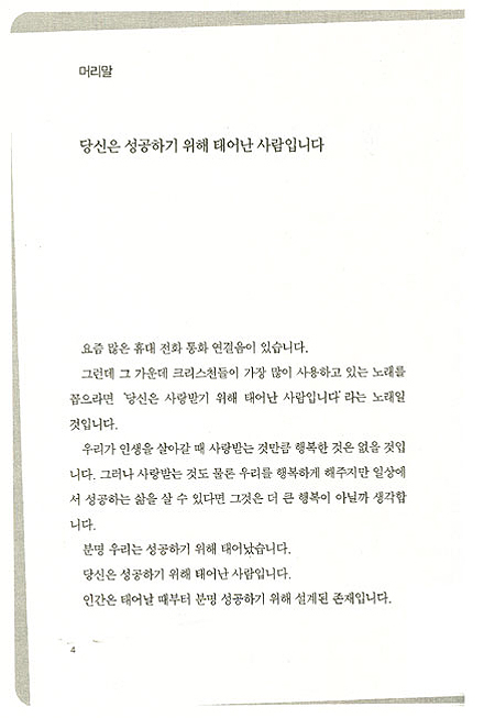 "누구나 성공의 잠재력을 갖고 있습니다. 다만 그것을 찾아내고 계발하지 않았을 뿐입니다. 자기 창조에 대한 노력을 통해 성공에 이르는 7가지 원리가 있습니다. "