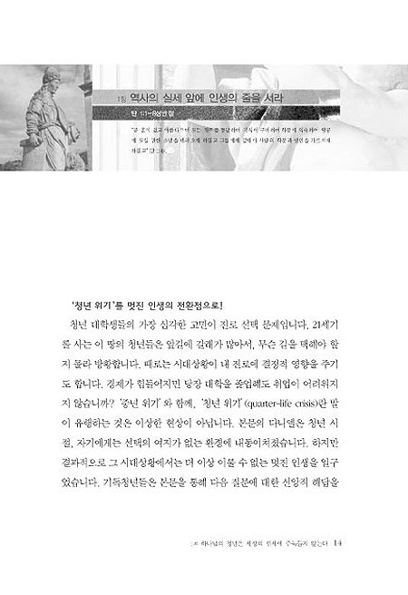정말 힘들고 암담한 시대입니다. 이 땅의 청년들에게는 더욱 그러합니다. 청년기는 인생 전체에서 진로 문제로 가장 고뇌하고 갈등하는 시기입니다. 더구나 우리 사회가 청년들에게 그들이 설 곳을 마련해주지 않아, 그 애태우는 심정이 청년 스스로 감당할 수준을 넘어서고 있습니다. 이런 답답한 시대에 하나님의 청년은 어떻게 살아야 합니까? 시대와 환경만 탓하고 주저앉을 수는 없지 않습니까.