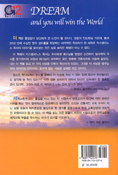 세계교회가 G12 물결을 타고 있는 이 시점에서 한국교회가 G12에 대한 올바른 이해를 하는 것이 절대적으로 필요하다고 생각한다. G12는 전통적인 교회 조직이 아닌 성령 운동과 제자훈련을 중심으로 한 셀그룹 운동으로서 현대 교회성장의 대표적인 모델이라고 할 수 있다. 이 책을 읽는 모든 분들이 비전의 사람으로서 한국교회와 세계교회 부흥을 주도하는 리더가 되기를 기도한다.